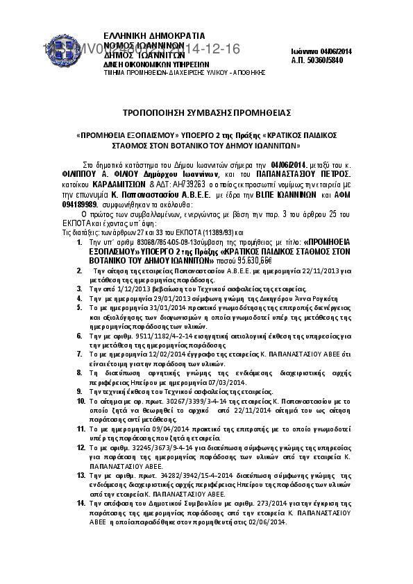 5. «ΠΡΟΜΗΘΕΙΑ ΕΞΟΠΛΙΣΜΟΥ» ΥΠΟΕΡΓΟ 2 της Πράξης «ΚΡΑΤΙΚΟΣ ΠΑΙΔΙΚΟΣ ΣΤΑΘΜΟΣ ΣΤΟΝ ΒΟΤΑΝΙΚΟ ΤΟΥ ΔΗΜΟΥ ΙΩΑΝΝ