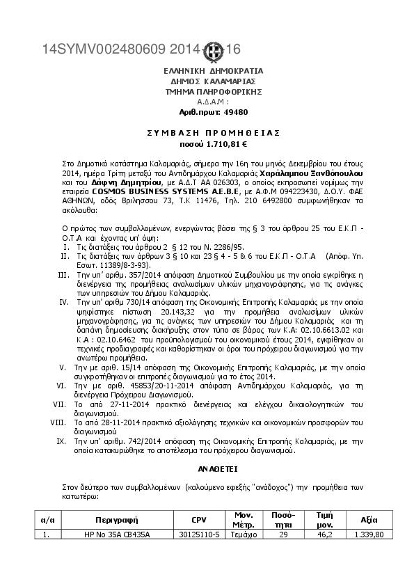 Αναζήτηση σε προκηρύξεις και συμβάσεις για:  δημοτικό