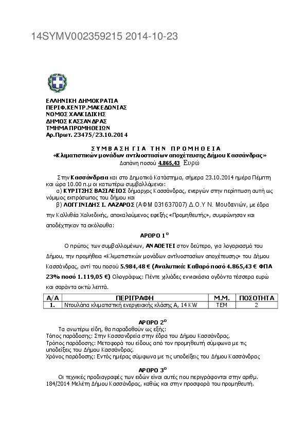 4. ΠΡΟΜΗΘΕΙΑ ΚΛΙΜΑΤΙΣΤΙΚΩΝ ΜΟΝΑΔΩΝ ΑΝΤΛΙΟΣΤΑΣΙΩΝ ΑΠΟΧΕΤΕΥΣΗΣ ΔΗΜΟΥ ΚΑΣΣΑΝΔΡΑΣ