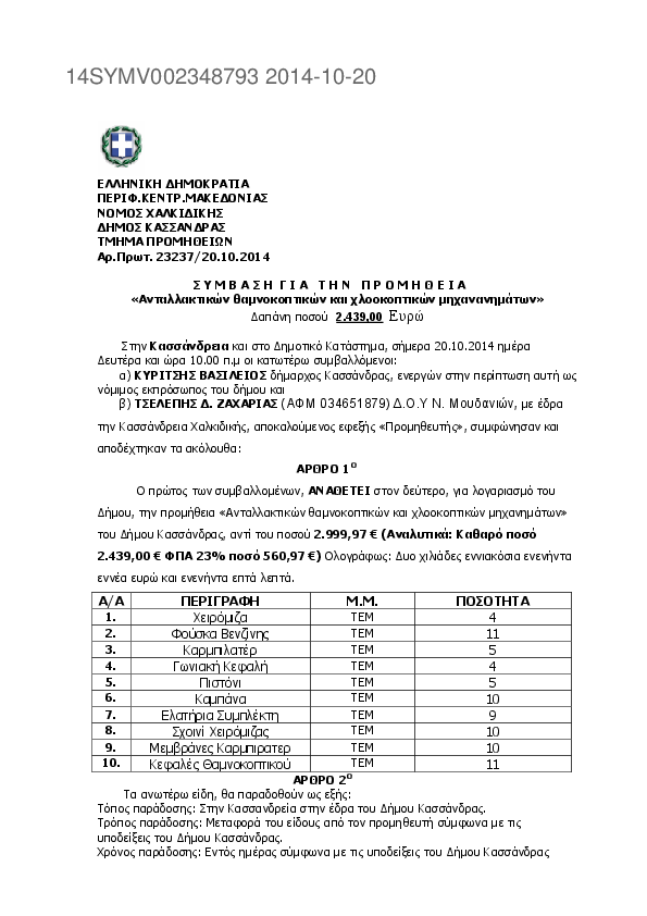 10. ΠΡΟΜΗΘΕΙΑ ΜΗΧΑΝΩΝ ΚΑΤΑΜΕΤΡΗΣΗΣ ΣΤΑ ΤΑΜΕΙΑ ΤΟΥ ΔΗΜΟΥ ΚΑΣΣΑΝΔΡΑΣ