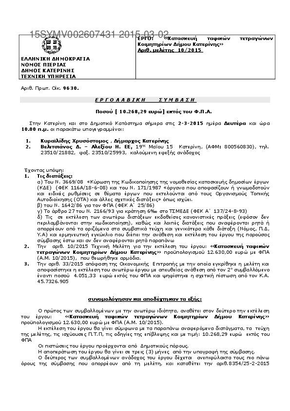 8. Διακήρυξη Εργασίας «Ναυαγοσωστικής κάλυψης ακτών Δήμου Κατερίνης» (αριθ. μελέτης 6/2015)