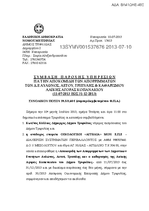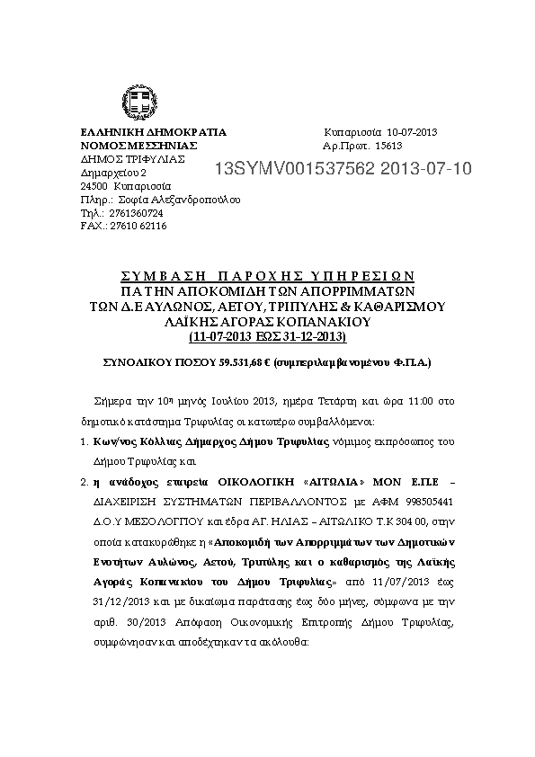 5. ΣΥΜΒΑΣΗ ΓΙΑ ΑΝΑΘΕΣΗ ΤΗΣ ΑΠΟΚΟΜ.ΑΠΟΡΡΙΜ.(ΔΕ ΑΕΤΟΥ, ΑΥΛΩΝΟΣ, ΤΡΙΠΥΛΗΣ & ΛΑΙΚΗΣ ΑΓΟΡΑΣ ΚΟΠΑΝΑΚΙΟΥ)