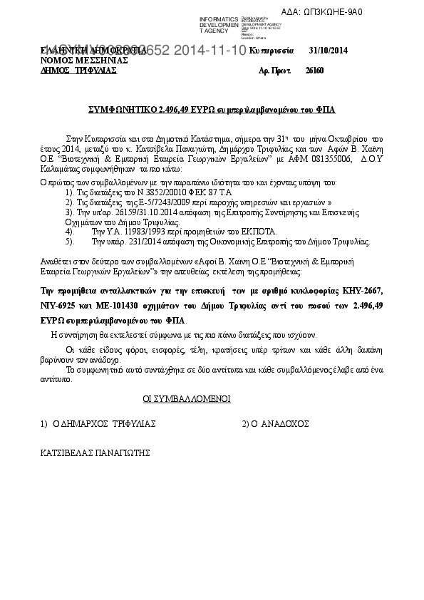 1. ΣΥΜΦΩΝΗΤΙΚΟ ΕΠΙΣΚΕΥΗΣ ΤΩΝ ΚΗΥ-2667, ΝΙΥ-6925 ΚΑΙ ΜΕ-101430