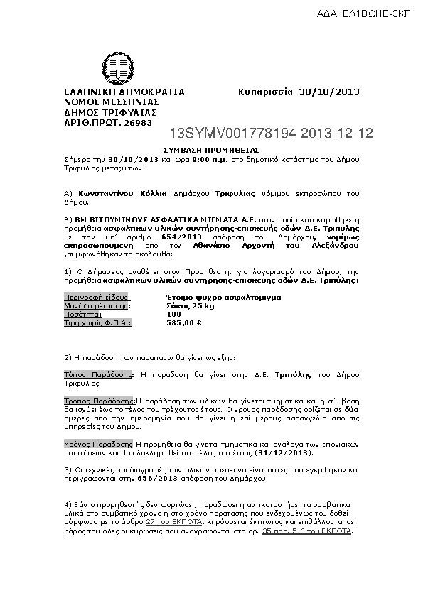 Αναζήτηση σε προκηρύξεις και συμβάσεις για: