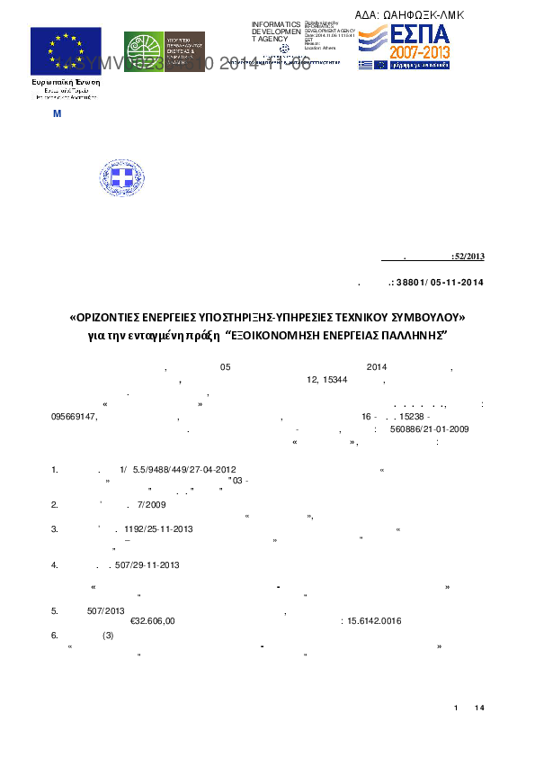 7. ΟΡΙΖΟΝΤΙΕΣ ΕΝΕΡΓΕΙΕΣ ΥΠΟΣΤΗΡΙΞΗΣ-ΥΠΗΡΕΣΙΕΣ ΤΕΧΝΙΚΟΥ ΣΥΜΒΟΥΛΟΥ» για την ενταγμένη πράξη “ΕΞΟΙΚΟΝΟΜΗΣ