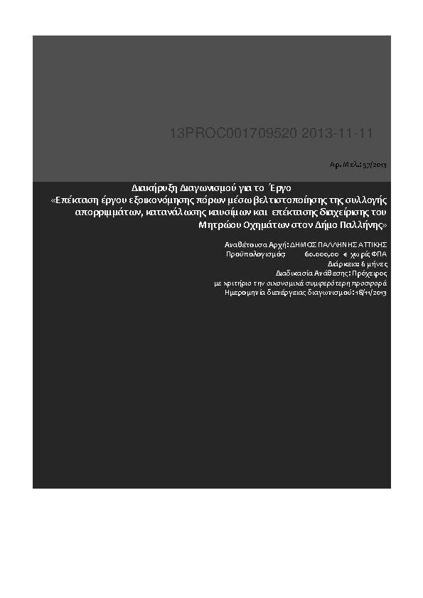 2. ΠΕΡΙΛΗΨΗ ΔΙΑΚΗΡΥΞΗΣ ΔΙΑΓΩΝΙΣΜΟΥ ΓΙΑ ΤΗΝ ΕΠΕΚΤΑΣΗ ΤΟΥ ΕΡΓΟΥ ΕΞΟΙΚΟΝΟΜΗΣΗ ΠΟΡΩΝ ΜΕΣΩ ΒΕΛΤΙΣΤΟΠΟΙΗΣΗΣ ΤΗς ΣΥΛΛΟΓΗΣ ΑΠΟΡΡΙΜΜΑΤΩΝ, ΚΑΤΑΝΑΛΩΣΗΣ ΚΑΥΣΙΜΩΝ ΚΑΙ ΕΠΕΚΤΑΣΗΣ ΔΙΑΧΕΙΡΙΣΗΣ ΤΟΥ ΜΗΤΡΩΟΥ ΟΧΗΜΑΤΩΝ ΣΤΟΝ ΔΗΜΟ ΠΑΛΛΗΝΗΣ