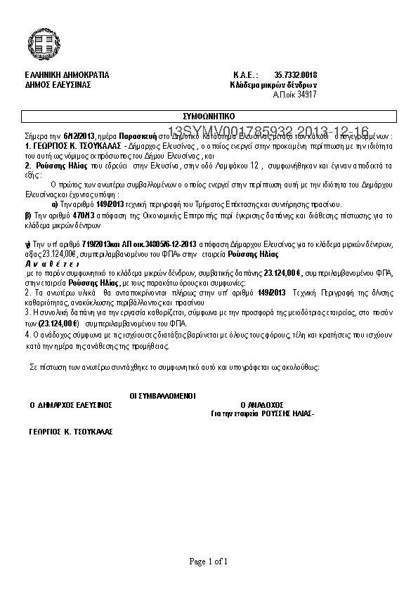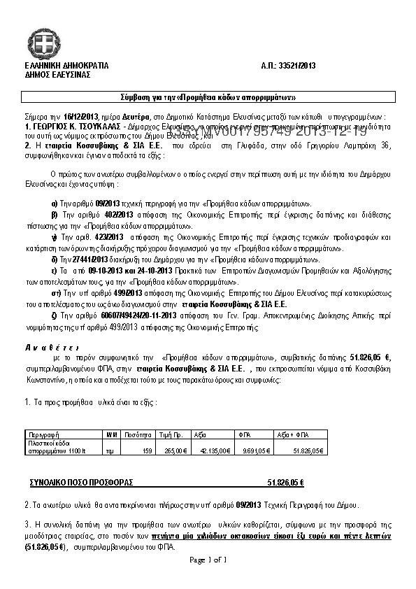 1. Σύμβαση για την «Προμήθεια Πινακίδων Σήμανσης»