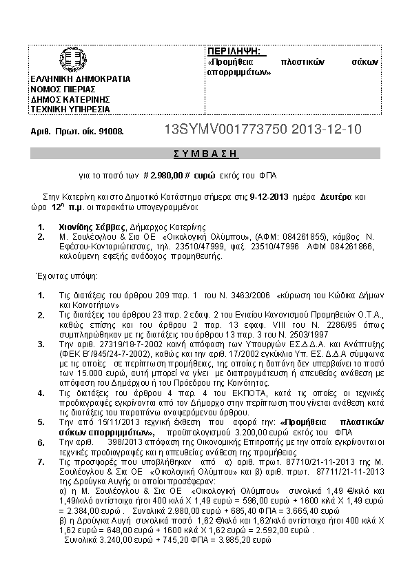 Αναζήτηση σε προκηρύξεις και συμβάσεις για:
