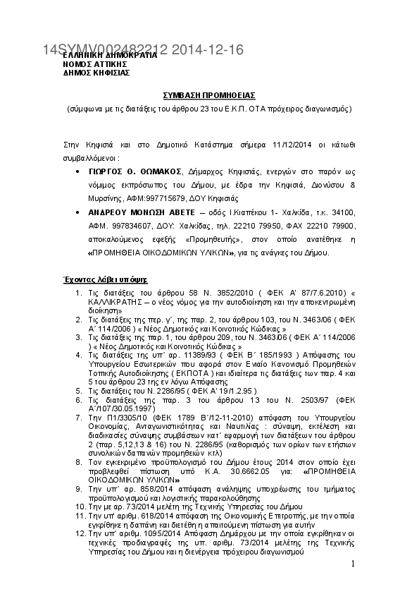 Αναζήτηση σε προκηρύξεις και συμβάσεις για:
