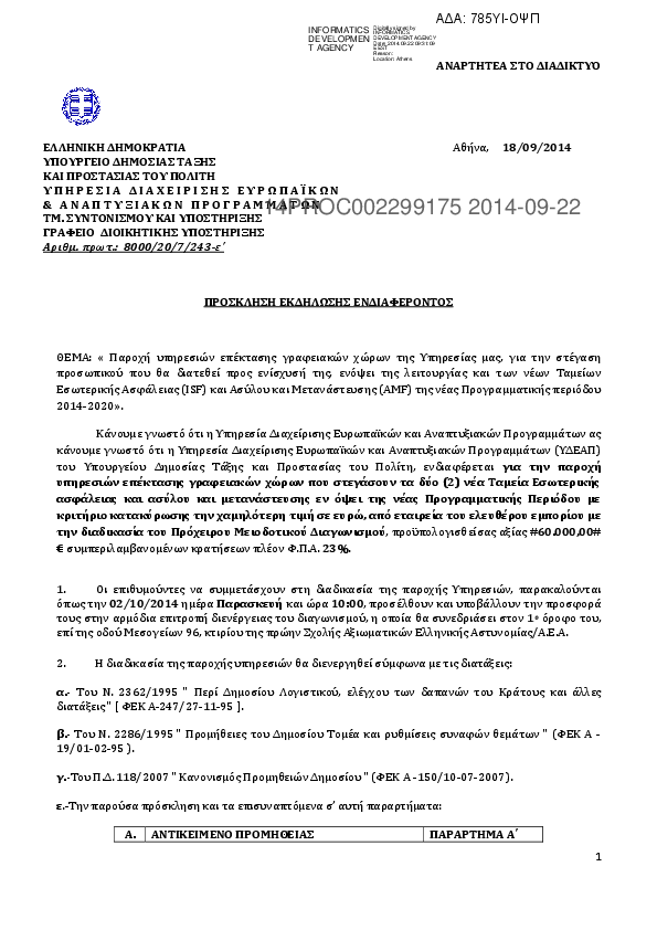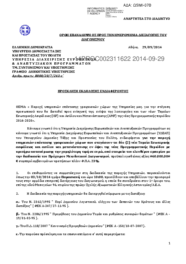 1. Πρόσκληση εκδήλωσης Ενδιαφέροντος