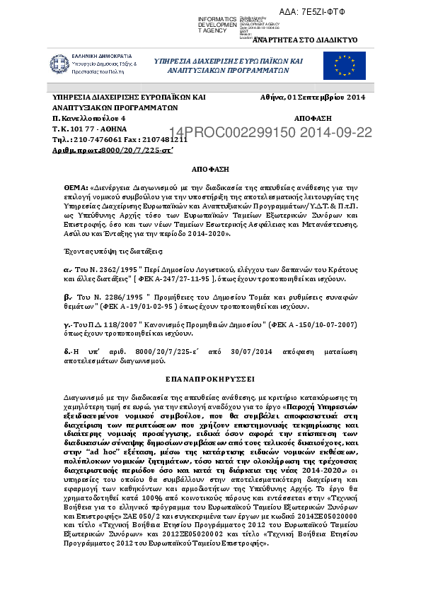 Αναζήτηση σε προκηρύξεις και συμβάσεις για: