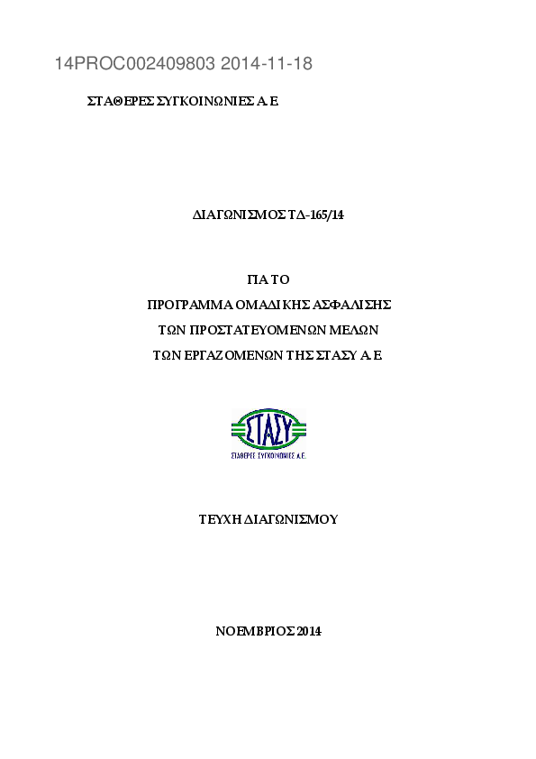 5. Διενέργεια ανοιχτού διαγωνισμού ΤΔ-164/14 για την ανάθεση του προγράμματος ομαδικής ασφάλισης για το