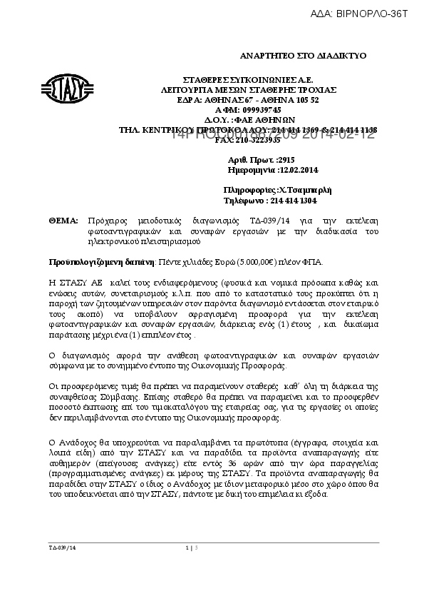 1. Πρόχειρος μειοδοτικός διαγωνισμός ΤΔ