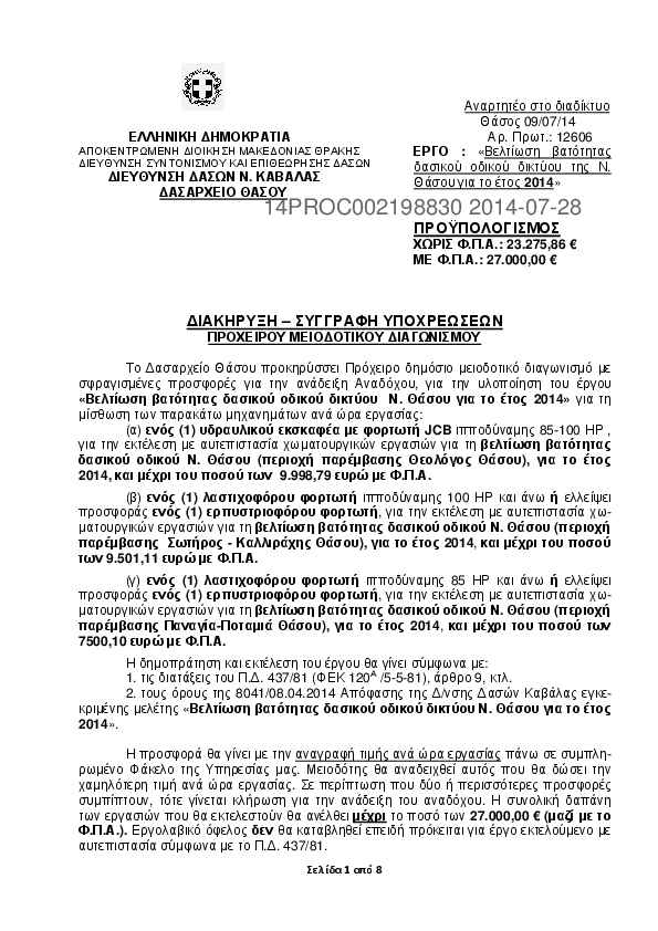 8. Διακήρυξη-Συγγραφή Υποχρεώσεων Πρόχειρου Μειοδοτικού Διαγωνισμού