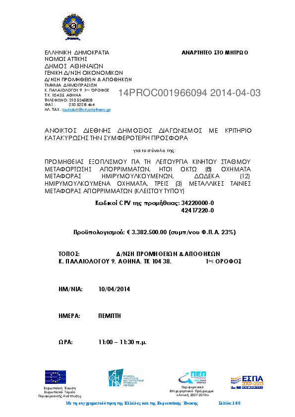 Αναζήτηση σε προκηρύξεις και συμβάσεις για: