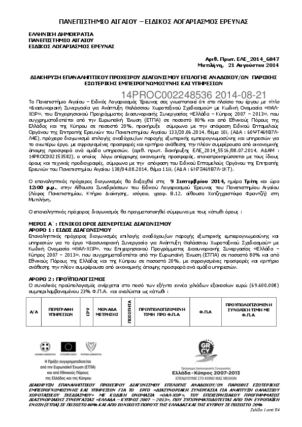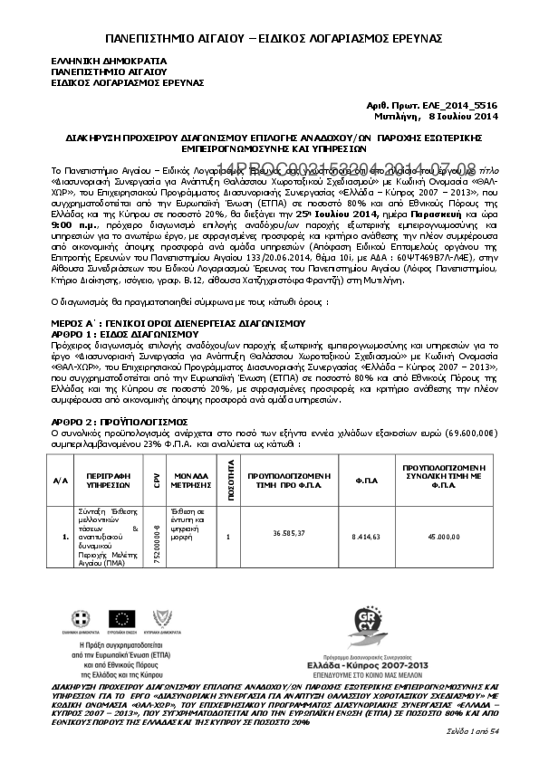 Αναζήτηση σε προκηρύξεις και συμβάσεις για: