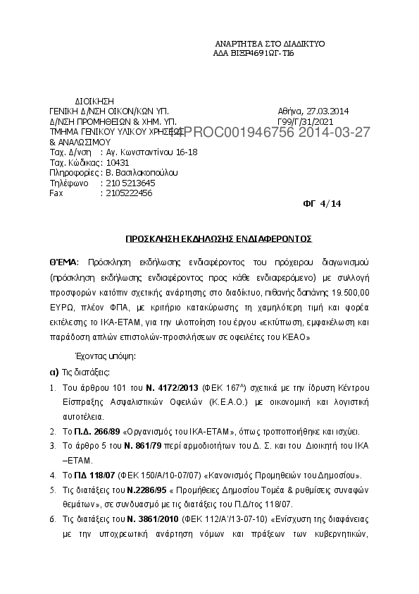 Αναζήτηση σε προκηρύξεις και συμβάσεις για: