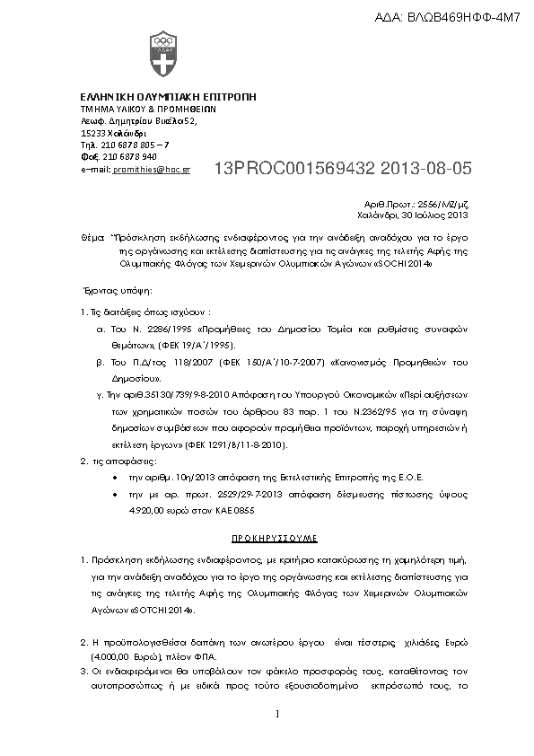 2. Διακήρυξη σύμβασης για το Έργο "ΔΙΑΔΙΚΤΥΑΚΗ ΠΥΛΗ ΤΗΣ ΕOE ΜΕ ΘΕΜΑ ΤΟΥΣ ΣΥΓΧΡΟΝΟΥΣ ΟΛΥΜΠΙΑΚΟΥΣ ΑΓΩΝΕΣ"
