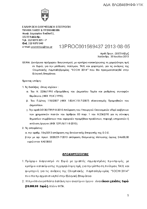 4. μίσθωση: πούλμαν, ΤΑΧΙ, και φορτηγού, για τις ανάγκες της Ολυμπιακής Λαμπαδηδρομίας “SOCHI 2014”