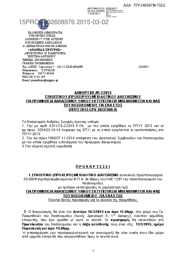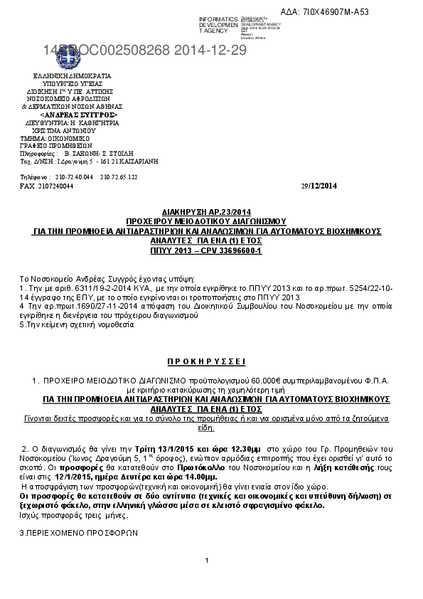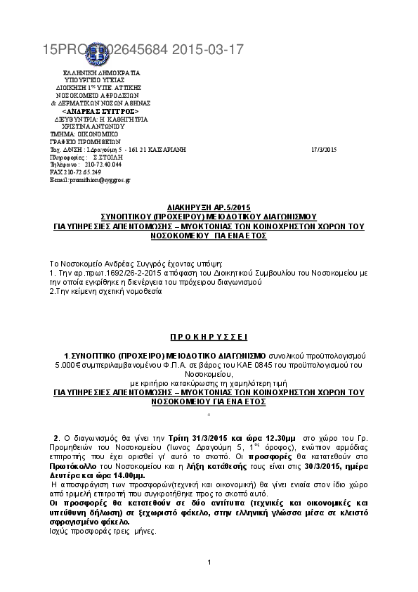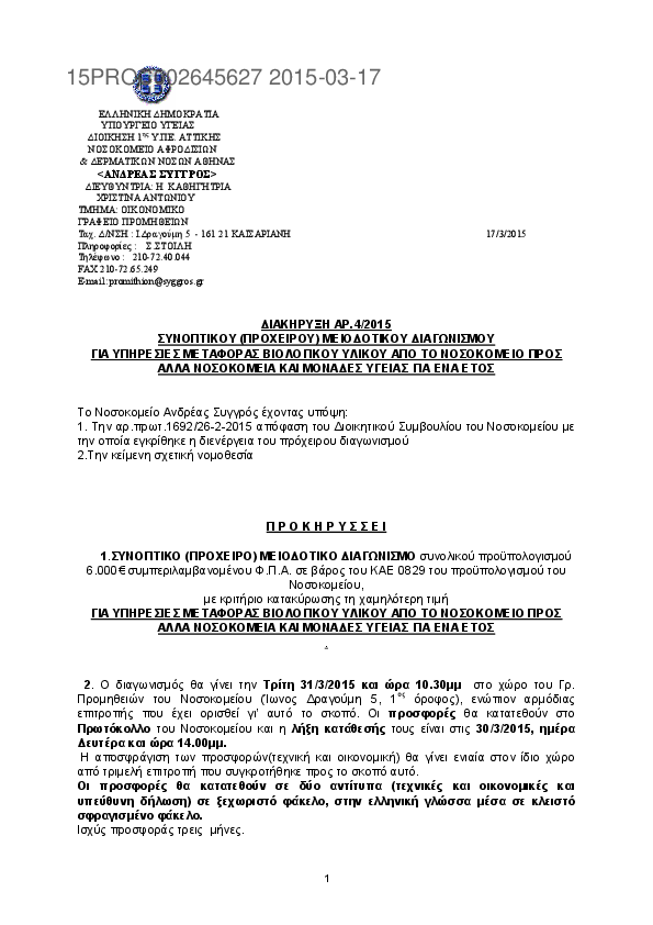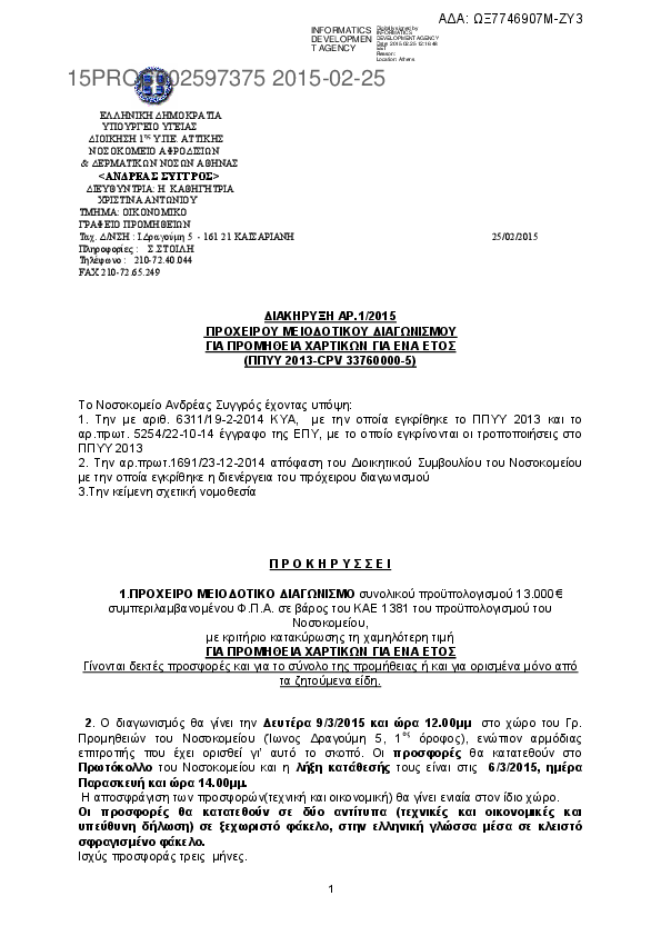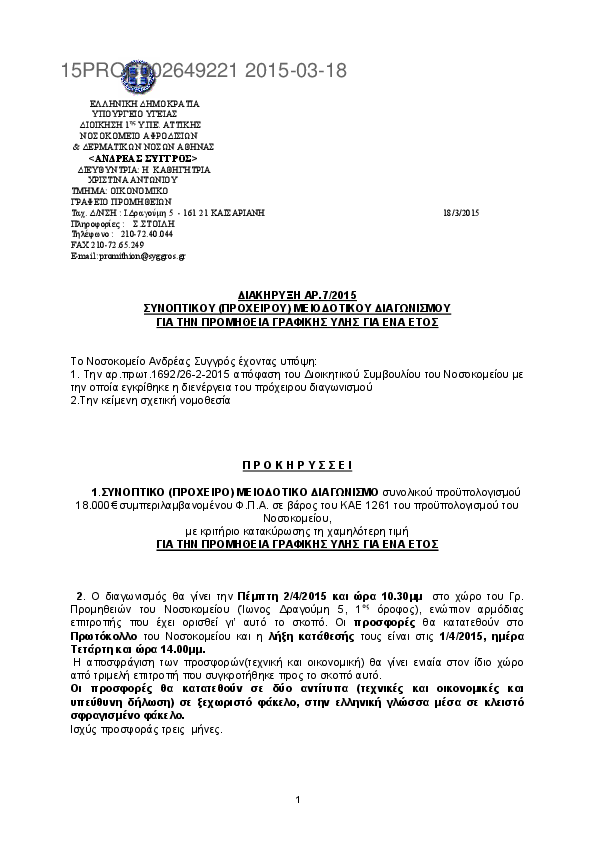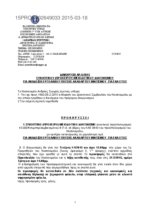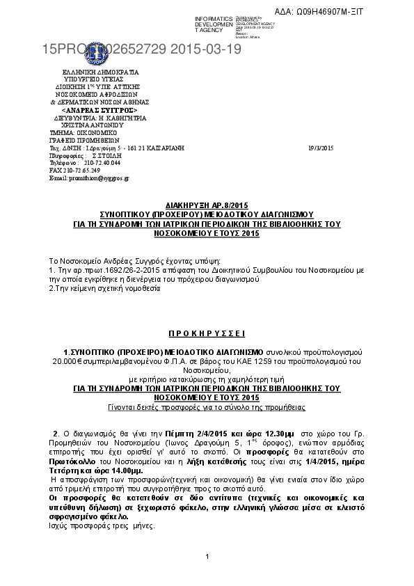 Αναζήτηση σε προκηρύξεις και συμβάσεις για:  διαγραφές