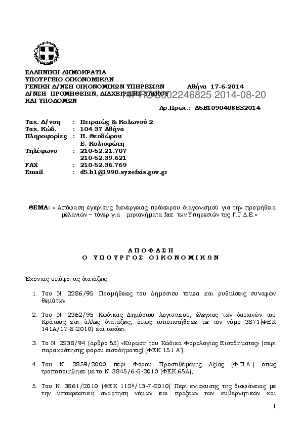 1. ΠΡΟΜΗΘΕΙΑ ΦΑΚΕΛΩΝ ΑΛΛΗΛΟΓΡΑΦΙΑΣ ΔΙΑΦΟΡΩΝ ΤΥΠΩΝ ΓΙΑ ΤΟ ΥΠΟΥΡΓΕΙΟ ΟΙΚΟΝΟΜΙΚΩΝ