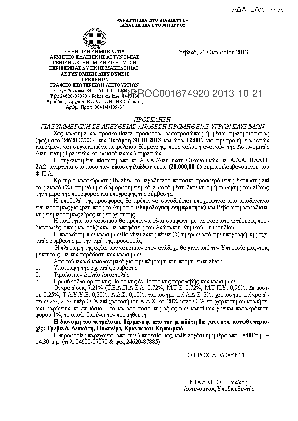 10. ΔΙΑΚΗΡΥΞΗ ΑΠΕΥΘΕΙΑΣ ΑΝΑΘΕΣΗ ΔΙΑΓΩΝΙΣΜΟΥ ΠΡΟΜΗΘΕΙΑΣ ΥΓΡΩΝ ΚΑΥΣΙΜΩΝ ΓΙΑ ΤΙΣ ΑΝΑΓΚΕΣ ΤΗΣ Α.Δ. ΓΡΕΒΕΝΩΝ.