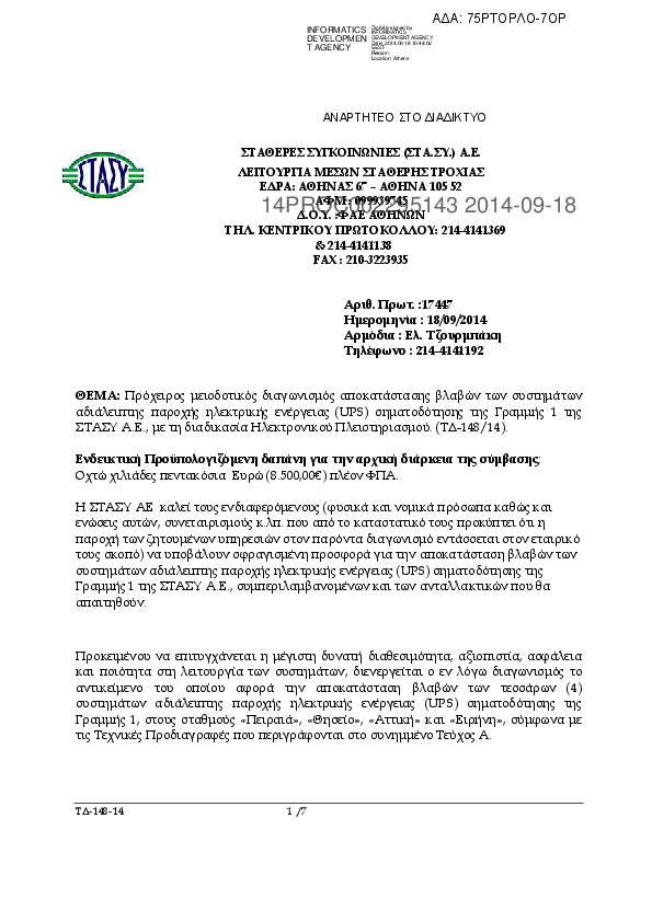 2. Πρόχειρος μειοδοτικός διαγωνισμός αποκατάστασης βλαβών των συστημάτων αδιάλειπτης παροχής ηλεκτρικής