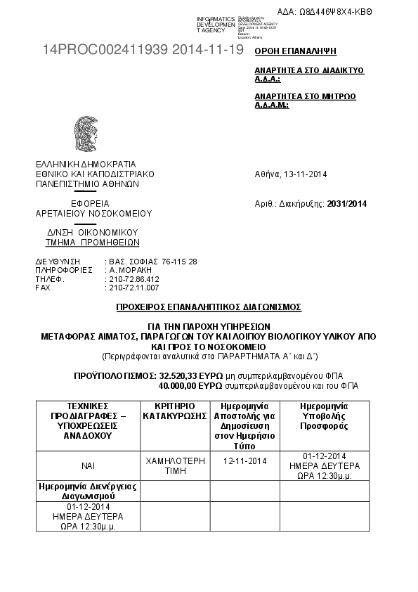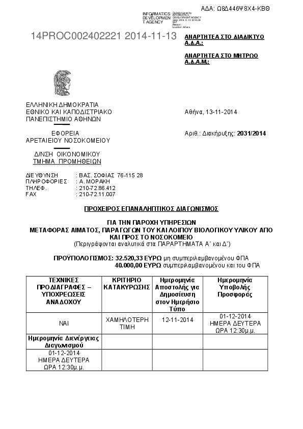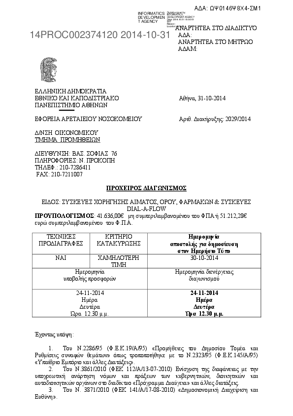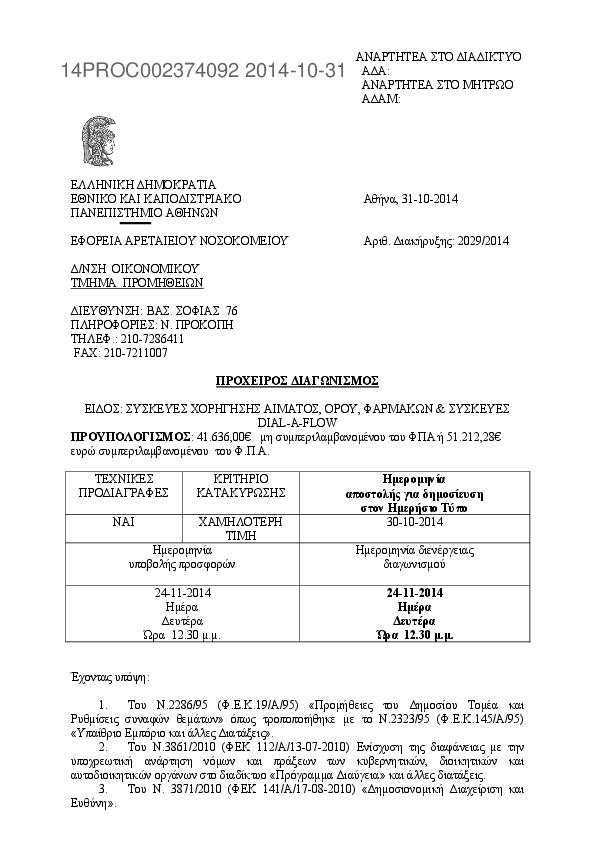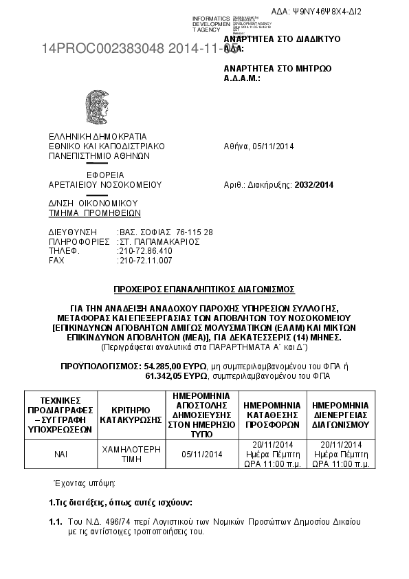 Αναζήτηση σε προκηρύξεις και συμβάσεις για: