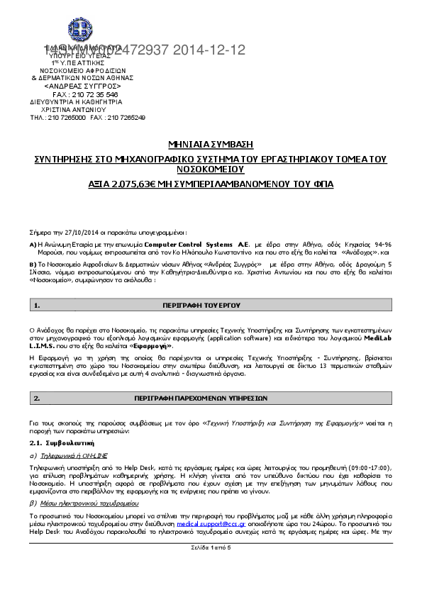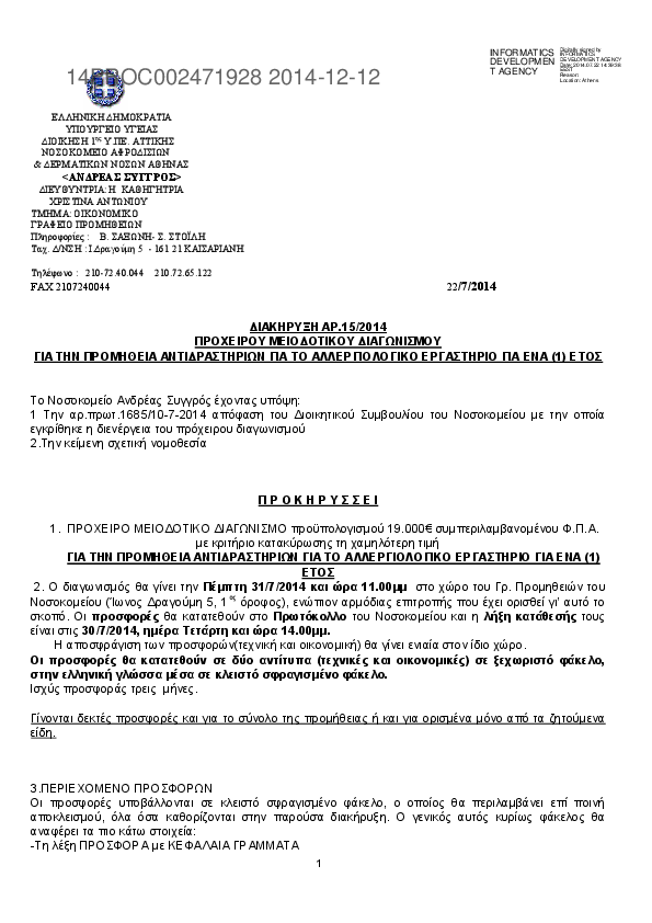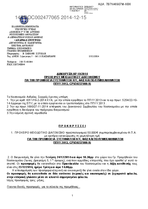 5. ΔΙΑΚΗΡΥΞΗ ΑΡ.19/2014 ΠΡΟΧΕΙΡΟΥ ΜΕΙΟΔΟΤΙΚΟΥ ΔΙΑΓΩΝΙΣΜΟΥ ΓΙΑ ΠΡΟΜΗΘΕΙΑ Η/Υ ΦΑΞ ΠΟΛΥΜΗΧΑΝΗΜΑΤΩΝ