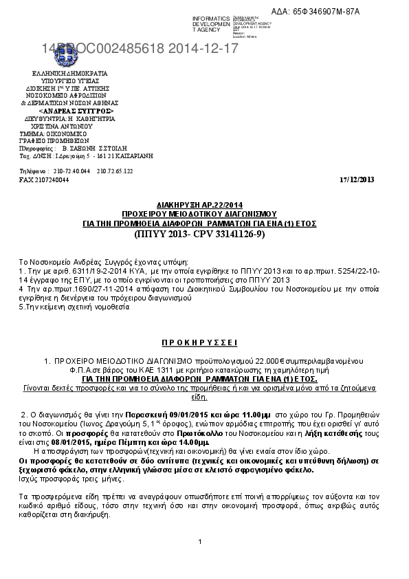 Αναζήτηση σε προκηρύξεις και συμβάσεις για:
