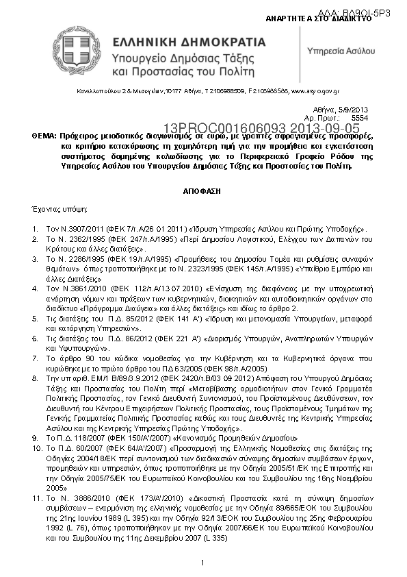 5. Πρόχειρος μειοδοτικός διαγωνισμός σε ευρώ, με γραπτές σφραγισμένες προσφορές, και κριτήριο κατακύρωσης τη χαμηλότερη τιμή για την προμήθεια και εγκατάσταση συστήματος δομημένης καλωδίωσης για το Περιφερειακό Γραφείο Ρόδου της Υπηρεσίας Α...