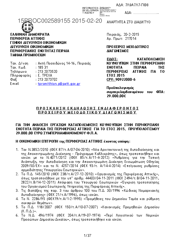 Αναζήτηση σε προκηρύξεις και συμβάσεις για:  διαγωνισμός