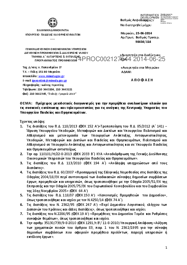 Αναζήτηση σε προκηρύξεις και συμβάσεις για:
