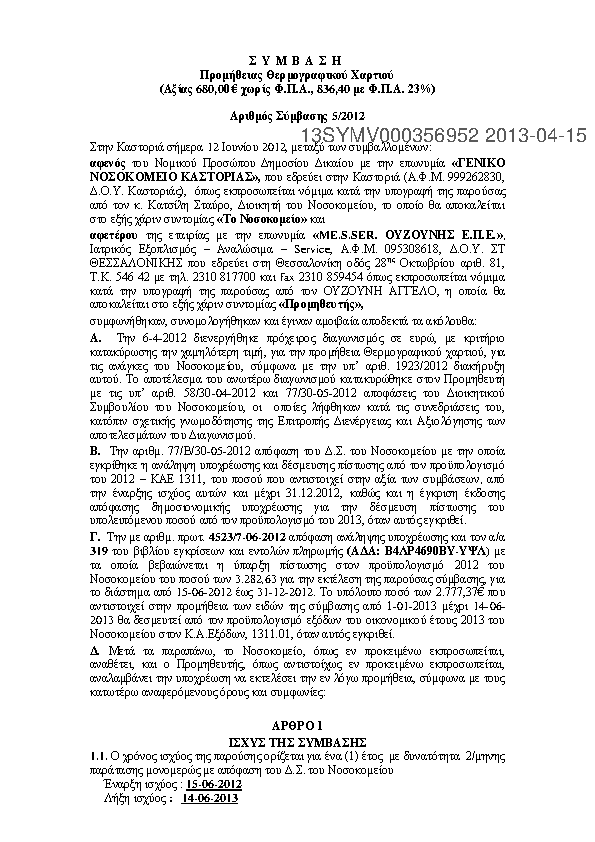 8. Σύμβαση προμήθειας θερμογραφικού χαρτιού