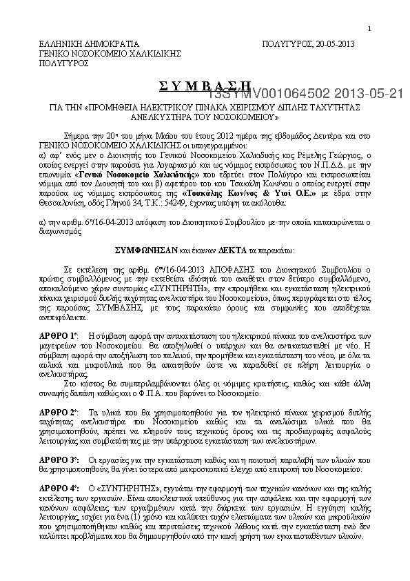 10. ΠΡΟΜΗΘΕΙΑ ΗΛΕΚΤΡΙΚΟΥ ΠΙΝΑΚΑ ΧΕΙΡΙΣΜΟΥ ΔΙΠΛΗΣ ΤΑΧΥΤΗΤΑΣ ΑΝΕΛΚΥΣΤΗΡΑ ΤΟΥ ΝΟΣΟΚΟΜΕΙΟΥ