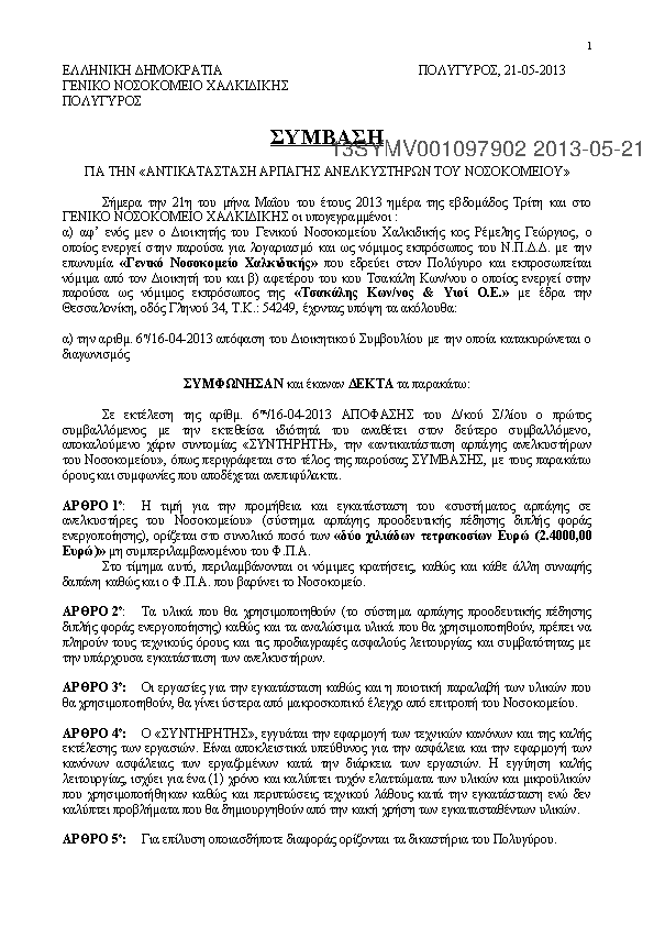 2. Ετήσια συντήρηση ηλεκτρολογικών και ηλεκτρομηχανολογικών εγκαταστάσεων Γ.Ν. Χαλκιδικής, Ψυχιατρικού Ξενώνα, ΜΤΝ, ΚΕΦΙΑΠ και των πέντε Κέντρων Υγείας του Νομού Χαλκιδικής