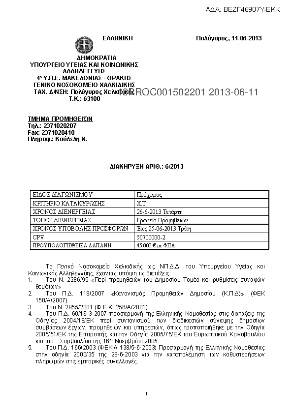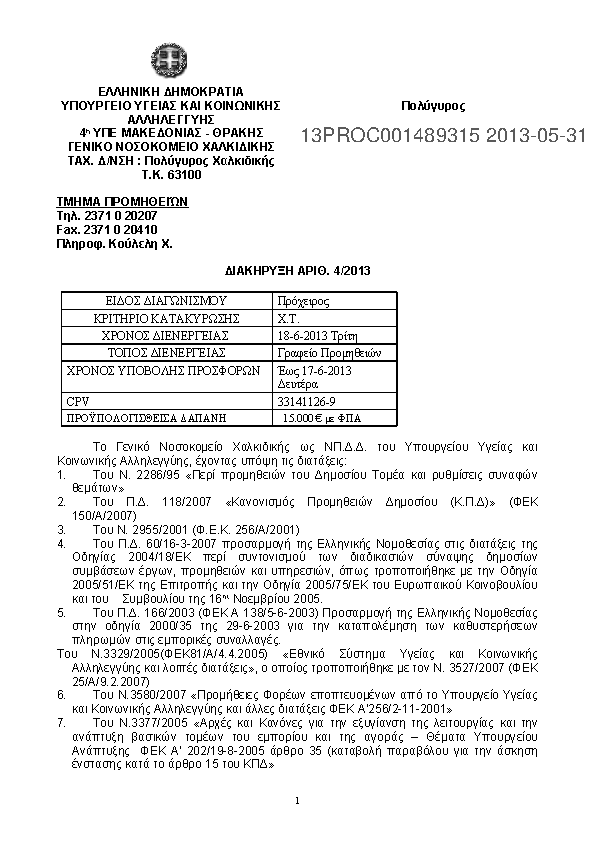 Αναζήτηση σε προκηρύξεις και συμβάσεις για: