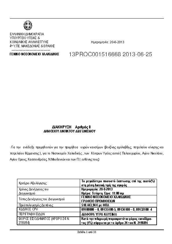 4. ΔΙΑΚΥΡΥΞΗ ΑΡΙΘΜ.8 ΤΟΥ ΔΗΜΟΣΙΟΥ ΑΝΟΙΚΤΟΥ ΔΙΑΓΩΝΙΣΜΟΥ ΓΙΑ ΤΗΝ ΑΝΑΔΕΙΞΗ ΠΡΟΜΗΘΕΥΤΩΝ ΓΙΑ ΤΗΝ ΠΡΟΜΗΘΕΙΑ ΥΓΡΩΝ ΚΑΥΣΙΜΩΝ (ΒΕΝΖΙΝΗΣ ΑΜΟΛΥΒΔΗΣ ,ΠΕΤΡΕΛΑΙΟΥ ΚΙΝΗΣΗΣ ΚΑΙ ΠΕΤΡΕΛΑΙΟΥ ΘΕΡΜΑΝΣΗΣ) ΓΙΑ ΤΟ ΓΕΝΙΚΟ ΝΟΣΟΚΟΜΕΙΟ ΧΑΛΚΙΔΙΚΗΣ, ΤΩΝ ΚΕΝΤΡΩΝ ΥΓΕΙΑΣ Α...