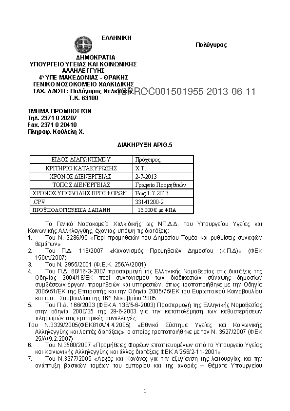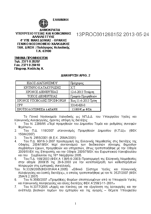 7. ΠΡΟΧ. ΔΙΑΓ. ΓΙΑ ΤΗΝ ΠΡΟΜΗΘΕΙΑ ΧΕΙΡΟΥΡΓΙΚΩΝ ΡΑΜΜΑΤΩΝ ΓΙΑ ΤΟ Γ.Ν.ΧΑΛΚΙΔΙΚΗΣ & ΤΑ Κ.Υ. ΤΟΥ ΝΟΜΟΥ