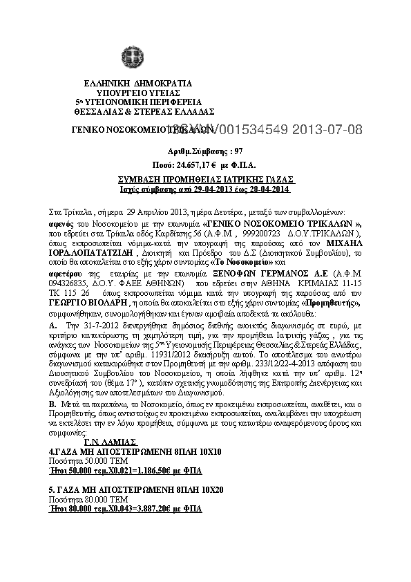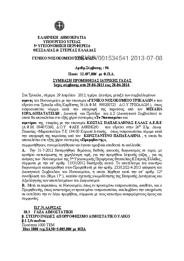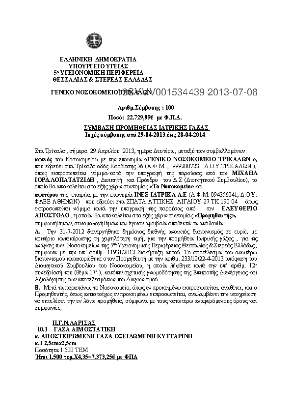3. ΠΡΟΜΗΘΕΙΑ ΙΑΤΡΙΚΗΣ ΓΑΖΑΣ ΝΟΣΟΚΟΜΕΙΩΝ 5ης ΥΠΕ