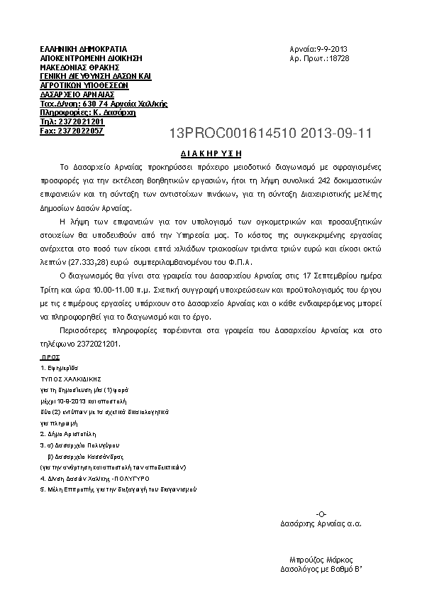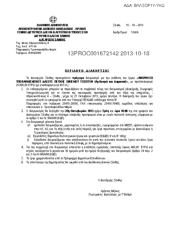 4. ΚΑΛΛΙΕΡΓΕΙΑ ΔΗΜΟΣΙΟΥ ΔΑΣΙΚΟΥ ΦΥΤΩΡΙΟΥ ΔΑΣΑΡΧΕΙΟΥ ΞΑΝΘΗΣ ΓΙΑ ΤΟ ΕΤΟΣ 2013