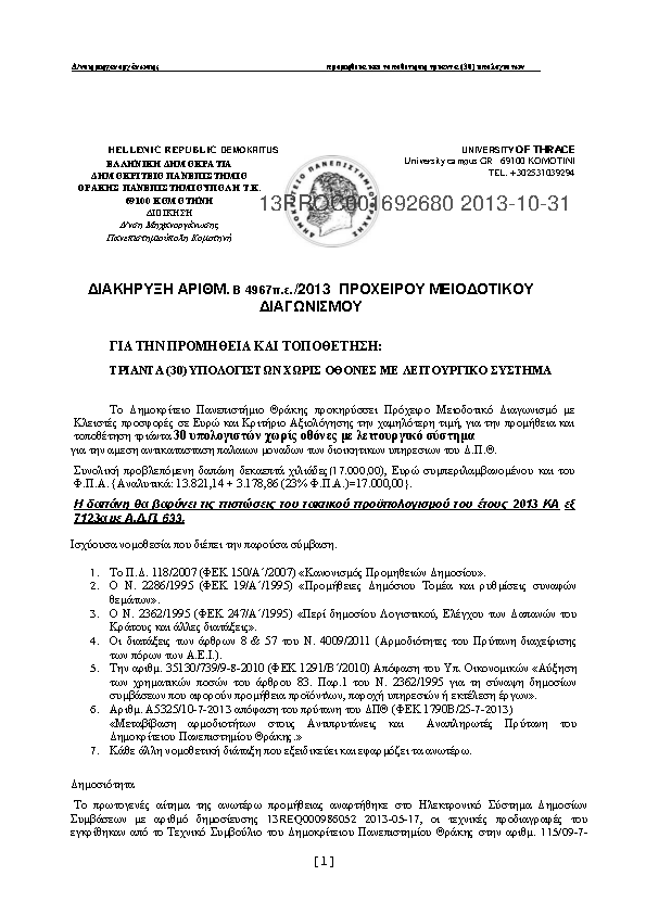 2. Διακήρυξη για την προμήθεια (30) υπολογιστών χωρίς οθόνες με λειτουργικό σύστημα