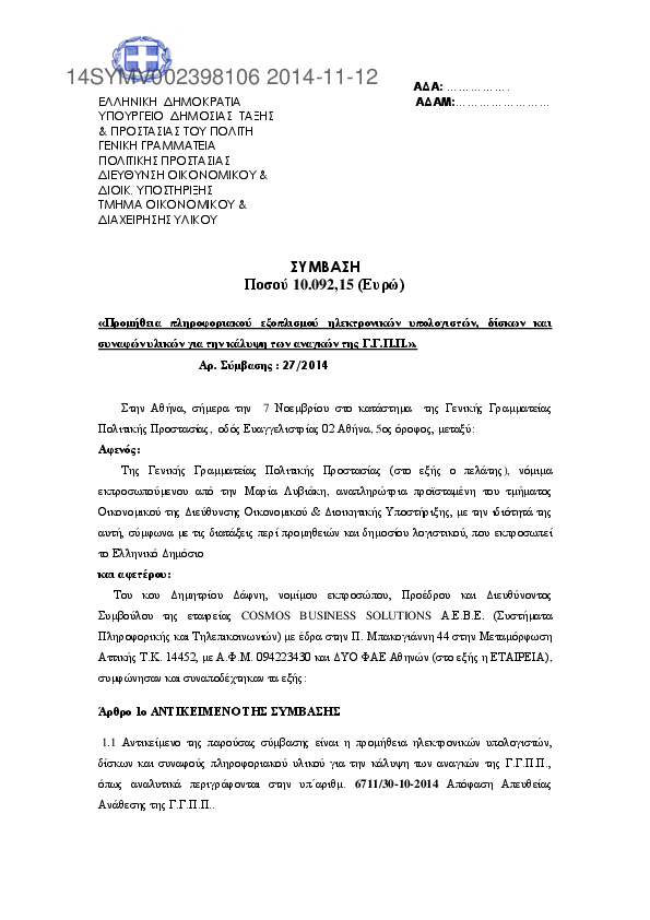 Αναζήτηση σε προκηρύξεις και συμβάσεις για: