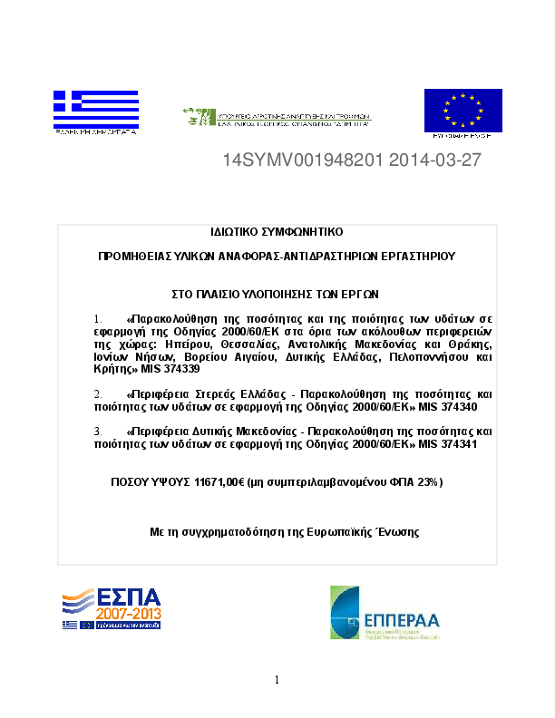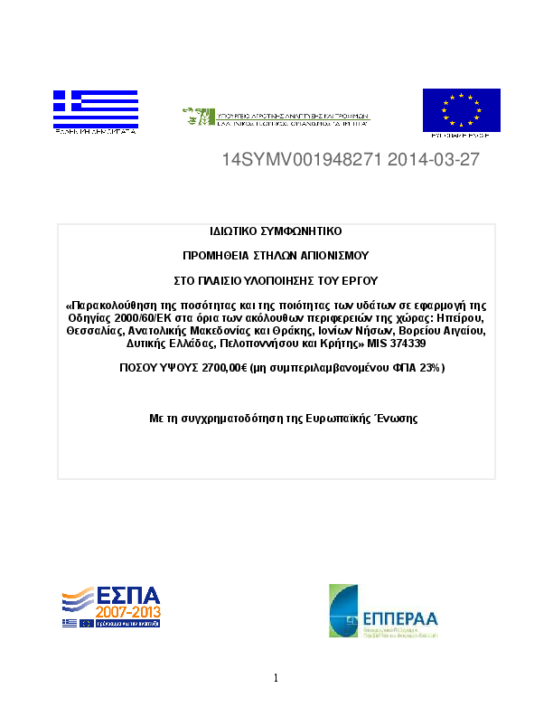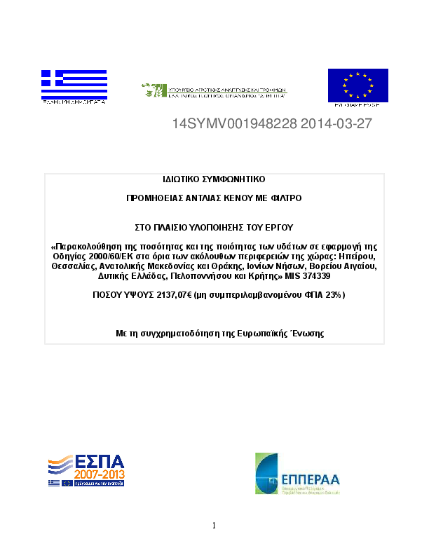 1. ΙΔΙΩΤΙΚΟ ΣΥΜΦΩΝΗΤΙΚΟ ΠΡΟΜΗΘΕΙΑ ΑΝΤΑΛΛΑΚΤΙΚΩΝ ΦΙΛΤΡΩΝ ΠΑΡΑΓΩΓΗΣ ΥΠΕΡΚΑΘΑΡΟΥ ΝΕΡΟΥ ΤΟΥ ΟΙΚΟΥ Millipore
