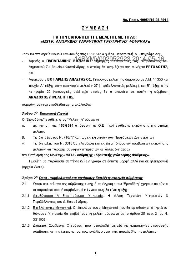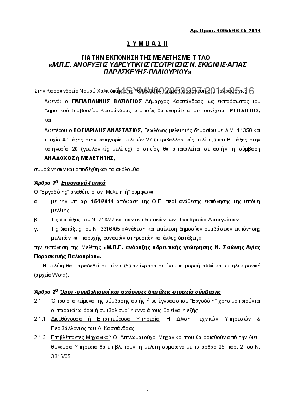 3. Μ.Π.Ε. ΑΝΟΡΥΞΗΣ ΥΔΡΕΥΤΙΚΗΣ ΓΕΩΤΡΗΣΗΣ Ν. ΣΚΙΩΝΗΣ-ΑΓΙΑΣ ΠΑΡΑΣΚΕΥΗΣ-ΠΑΛΙΟΥΡΙΟΥ
