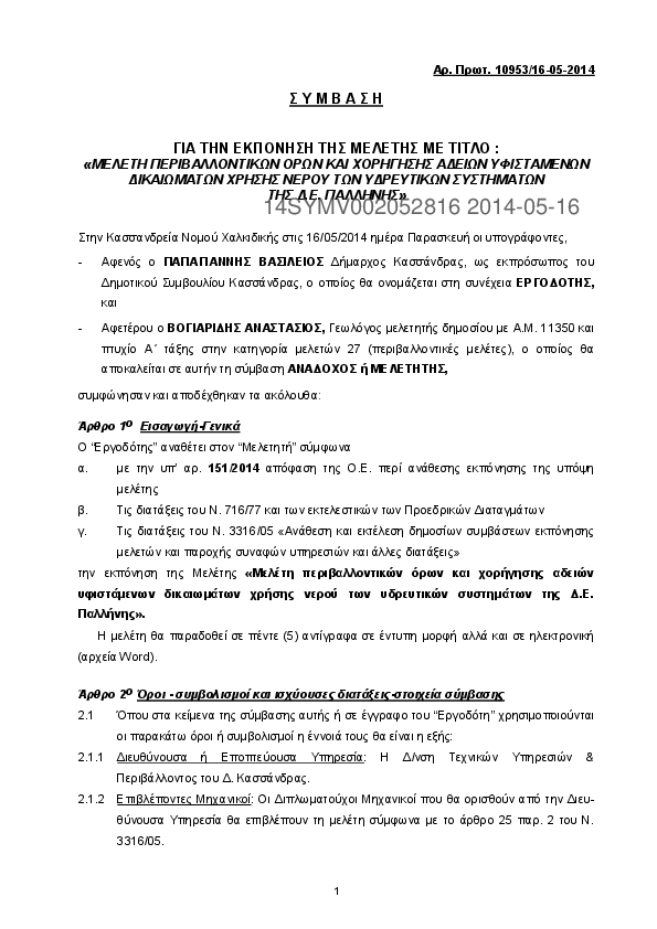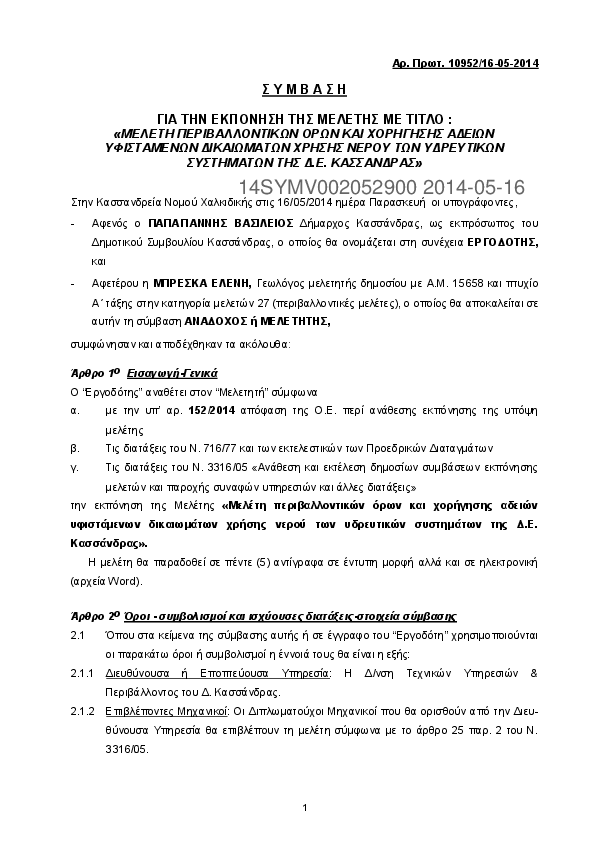 1. ΜΕΛΕΤΗ ΠΕΡΙΒΑΛΛΟΝΤΙΚΩΝ ΟΡΩΝ ΚΑΙ ΧΟΡΗΓΗΣΗΣ ΑΔΕΙΩΝ ΥΦΙΣΤΑΜΕΝΩΝ ΔΙΚΑΙΩΜΑΤΩΝ ΧΡΗΣΗΣ ΝΕΡΟΥ ΤΩΝ ΥΔΡΕΥΤΙΚΩΝ