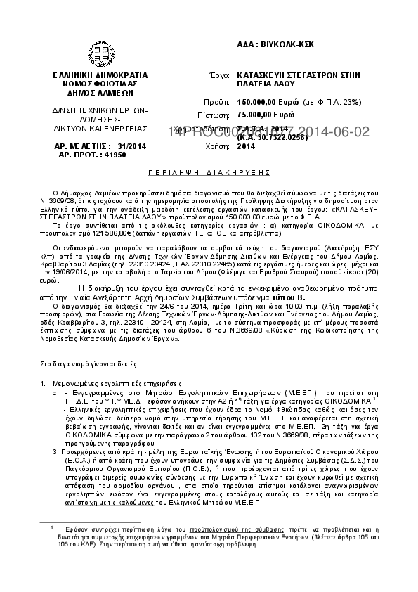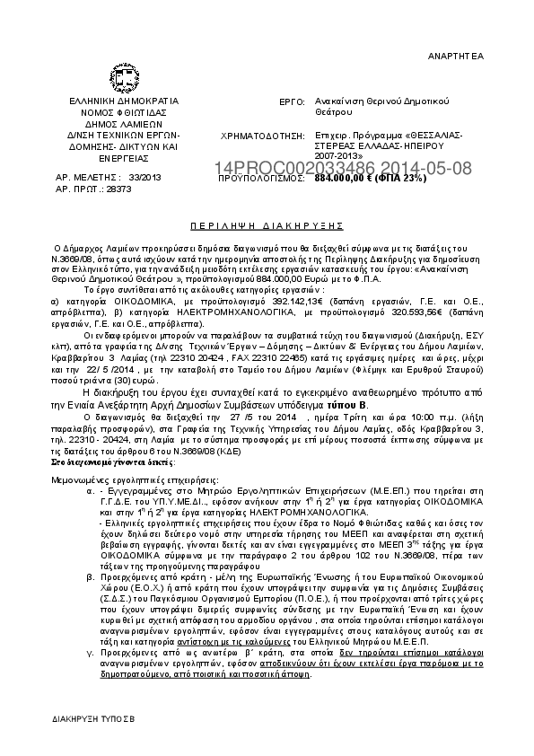 Αναζήτηση σε προκηρύξεις και συμβάσεις για: