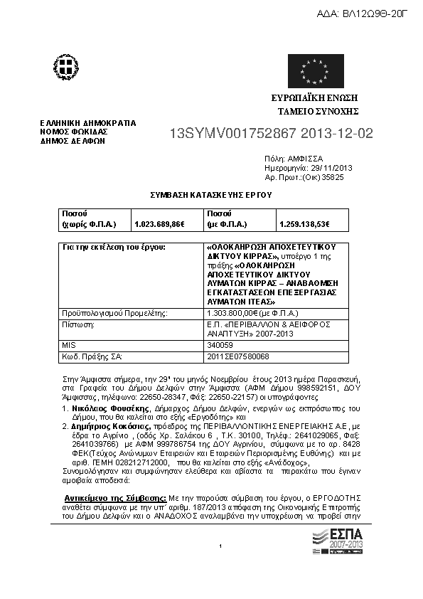 9. «ΟΛΟΚΛΗΡΩΣΗ ΑΠΟΧΕΤΕΥΤΙΚΟΥ ΔΙΚΤΥΟΥ ΚΙΡΡΑΣ», υποέργο 1 της πράξης «ΟΛΟΚΛΗΡΩΣΗ ΑΠΟΧΕΤΕΥΤΙΚΟΥ ΔΙΚΤΥΟΥ ΛΥ