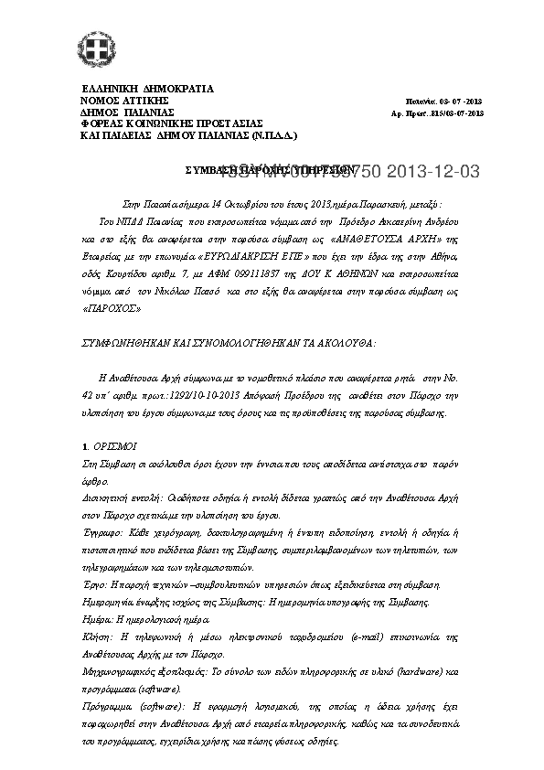 3. ΠΑΡΟΧΗ ΥΠΗΡΕΣΙΩΝ ΣΥΜΦΩΝΗΜΕΝΟΥ ΕΠΙΠΕΔΟΥ (S.L.A) ΥΠΟΣΤΗΡΙΞΗΣ ΠΑΡΑΓΩΓΙΚΗΣ ΛΕΙΤΟΥΡΓΙΑΣ ΤΟΥ ΟΠΣ
