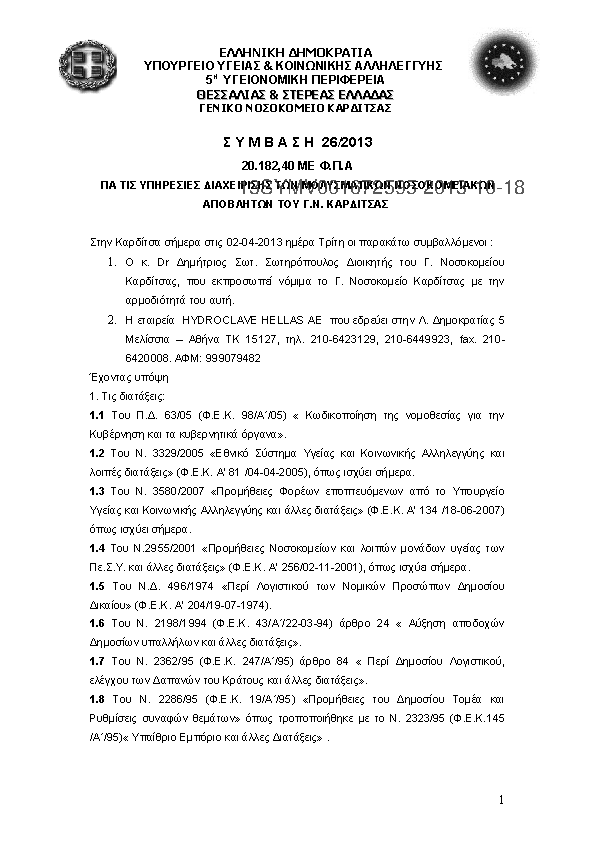 1. ΥΠΗΡΕΣΙΕΣ ΔΙΑΧΕΙΡΙΣΗΣ ΤΩΝ ΜΟΛΥΣΜΑΤΙΚΩΝ ΝΟΣΟΚΟΜΕΙΑΚΩΝ ΑΠΟΒΛΗΤΩΝ ΤΟΥ Γ.Ν. ΚΑΡΔΙΤΣΑΣ